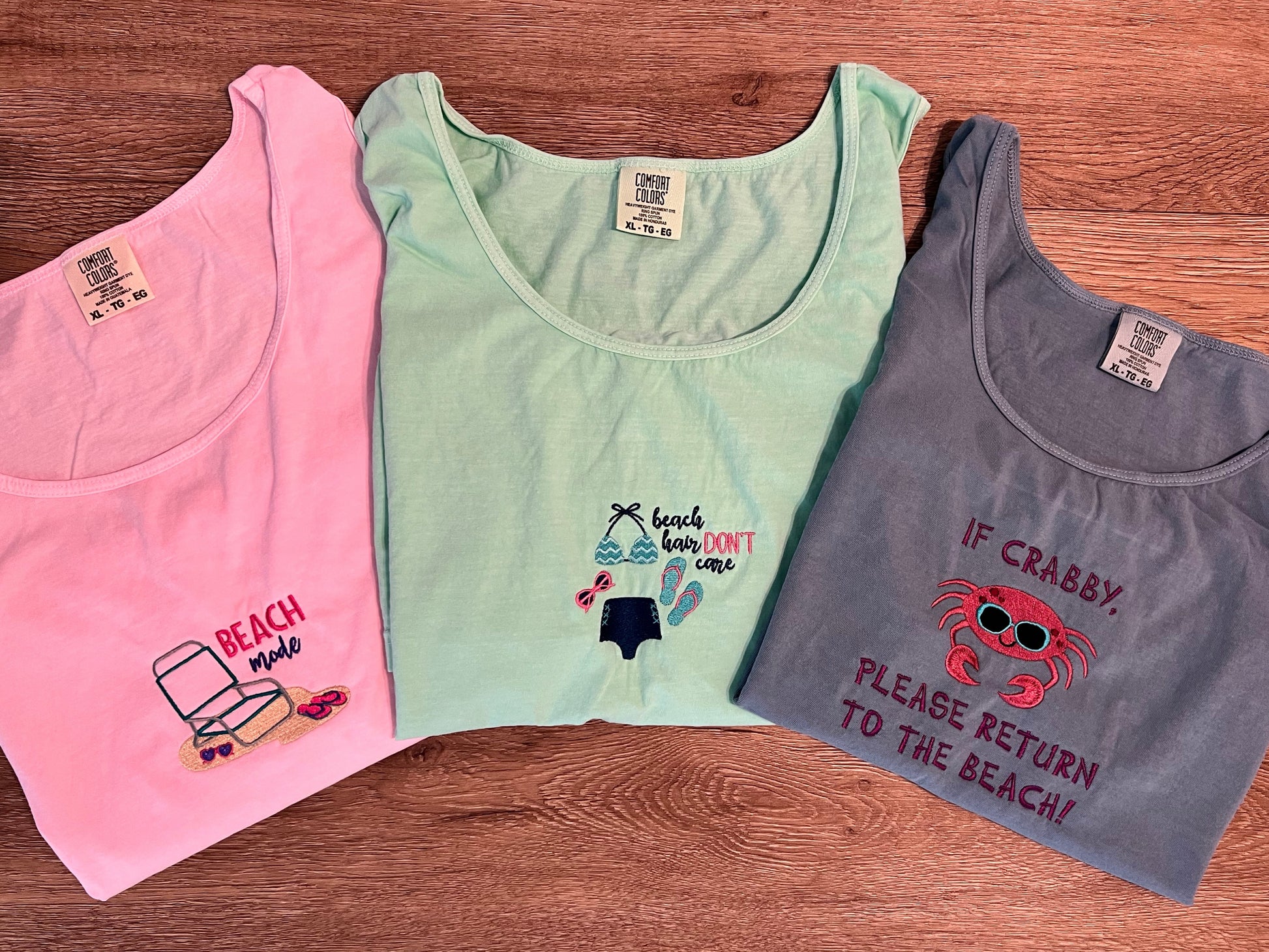 Discover our Beach Theme Designs collection featuring Comfort Colors tanks adorned with humorous beach-inspired embroidery. Crafted for comfort and style, these pieces bring a playful vibe to your casual wardrobe while celebrating coastal fun. Perfect for beach lovers seeking lighthearted, quality apparel that stands out