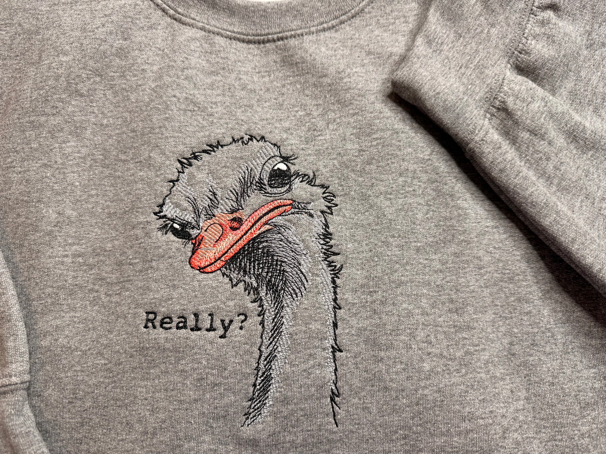Embroidered Ostrich Sweatshirt, Funny Pun Crewneck, Sarcastic Humor