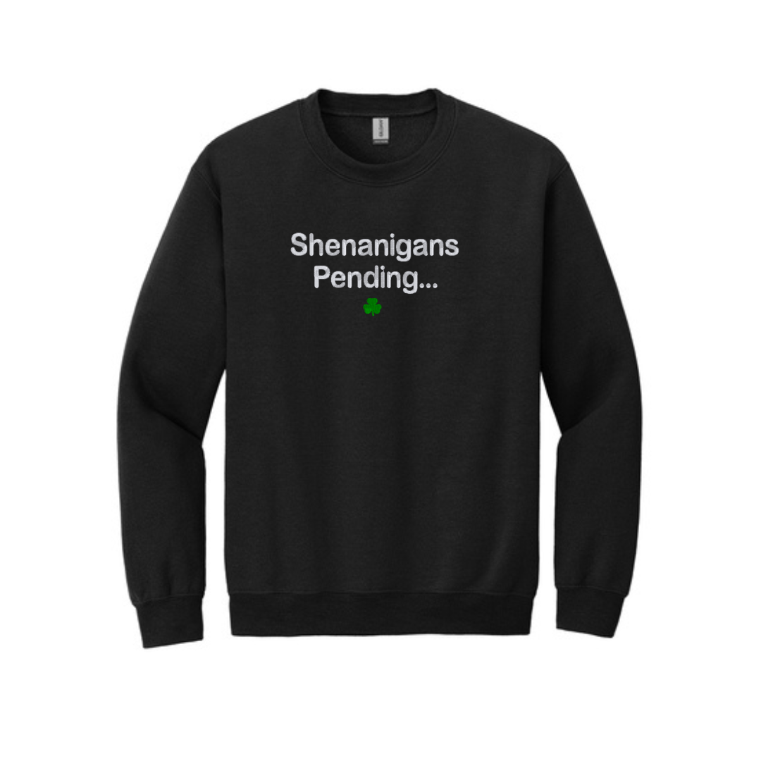 Embroidered Shenanigans Pending Sweatshirt | St Patrick's Day Crewneck | Fun Irish Sweater | St Patty's Day Top