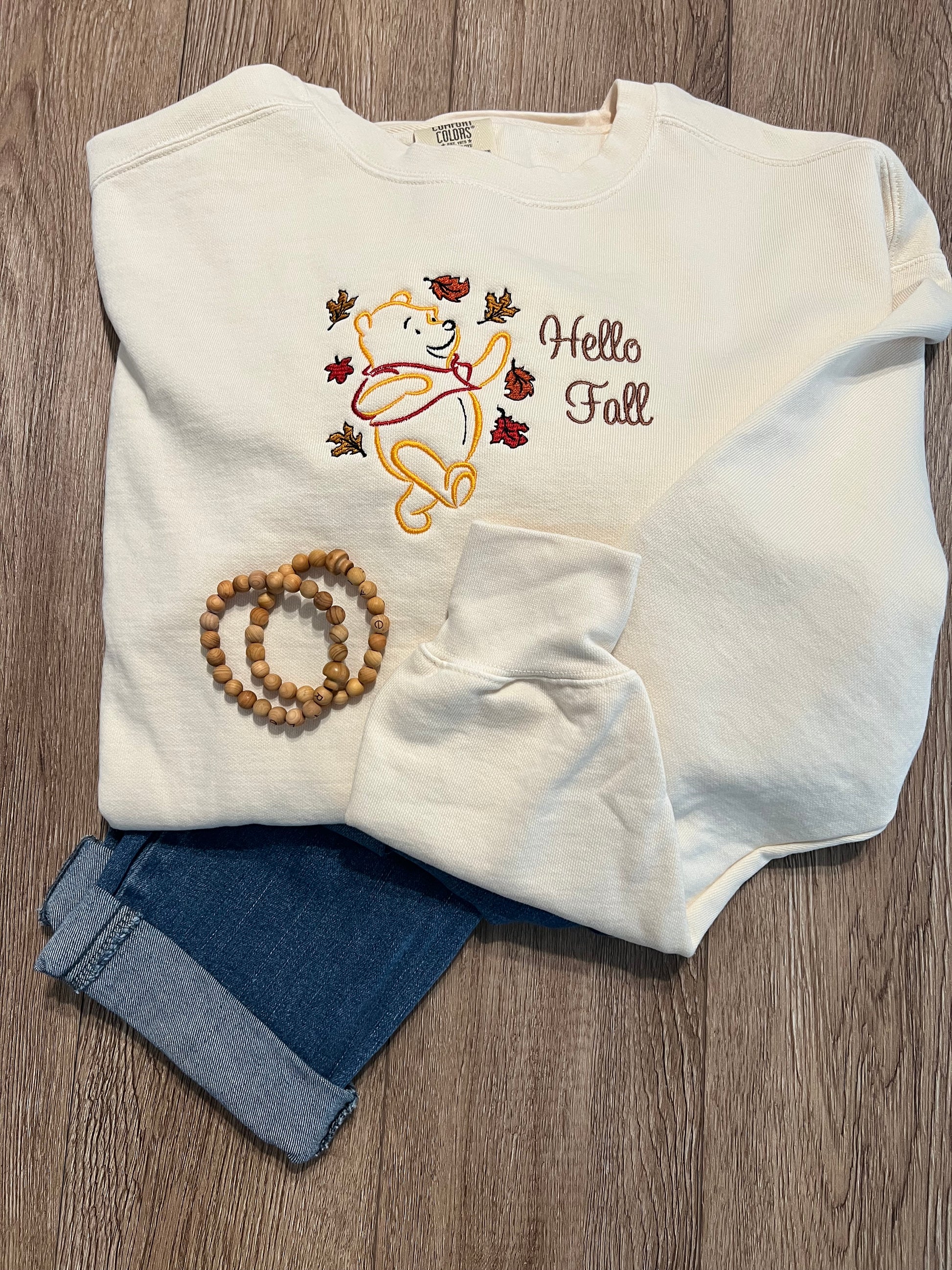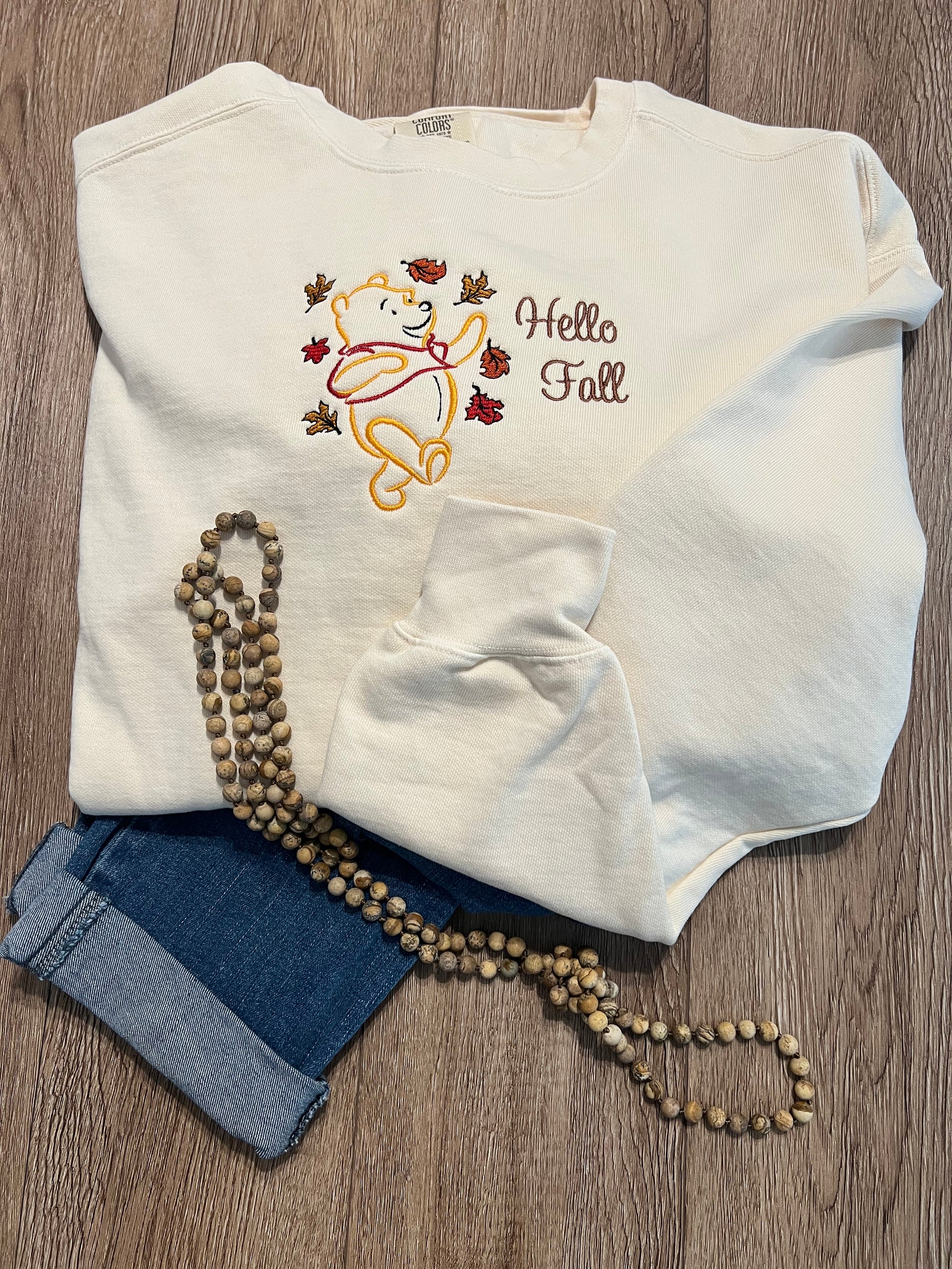 Celebrate the cozy spirit of autumn with this expertly crafted "Hello Fall" sweatshirt. Featuring detailed embroidery with gently falling leaves and the welcoming "Hello Fall" text. This Comfort Colors cotton sweatshirt offers both warmth and softness. Perfect for crisp fall days, it combines comfort with seasonal charm to keep you stylish and snug throughout the season.