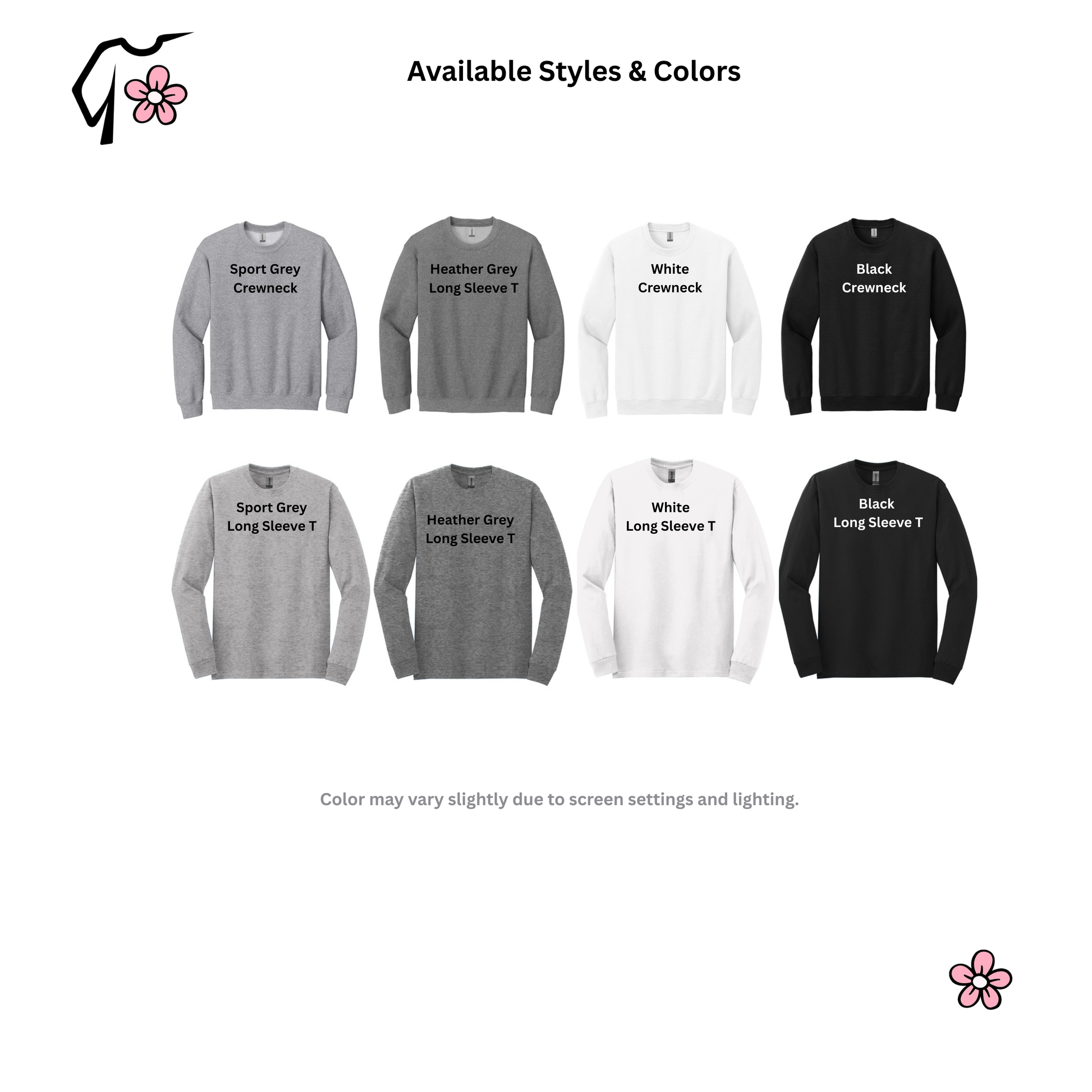 • Long Sleeves T’s are lightweight and breathable. Sweatshirts are midweight fleece with a soft, cozy interior